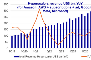 Hyperscalers (AMZN, GOOG, META, MSFT) revenues accelerating from 1Q25.