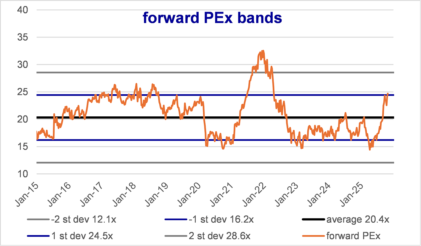 Consensus: not high. OP growth in 2026 15%, in 2027 13%. Beware low Net Income growth forecast for 2026 (6%) due to large non-ops investment gains in 2025. GOOG is trading at 25x 2026 EPS and 22x 2027. Not expensive.