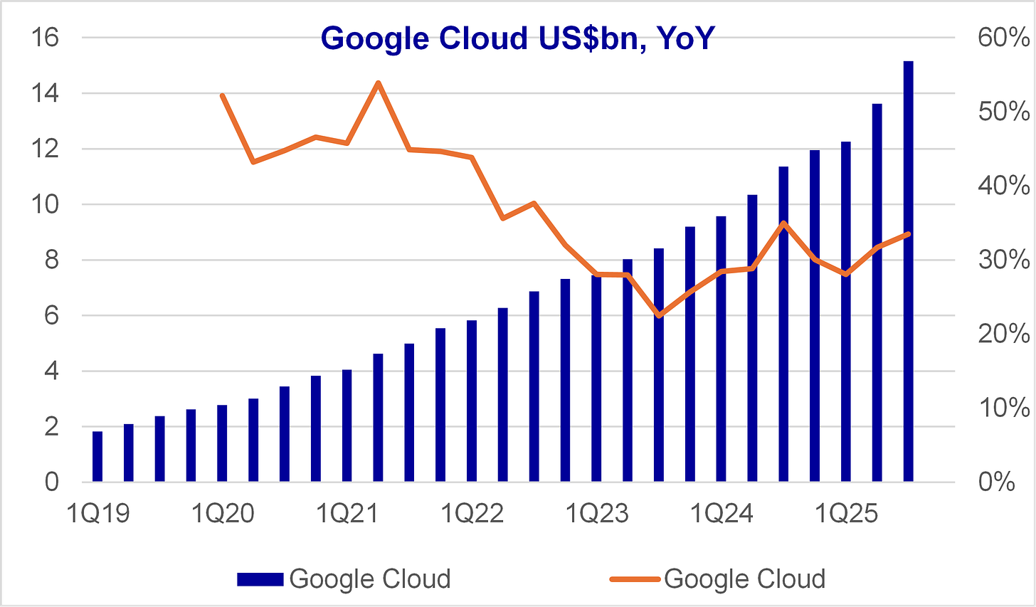 we see strong demand for enterprise AI infrastructure, including TPUs and GPUs, Enterprise AI solutions driven by Gemini 2.5, core infrastructure and other services such as cybersecurity and data analytics”
