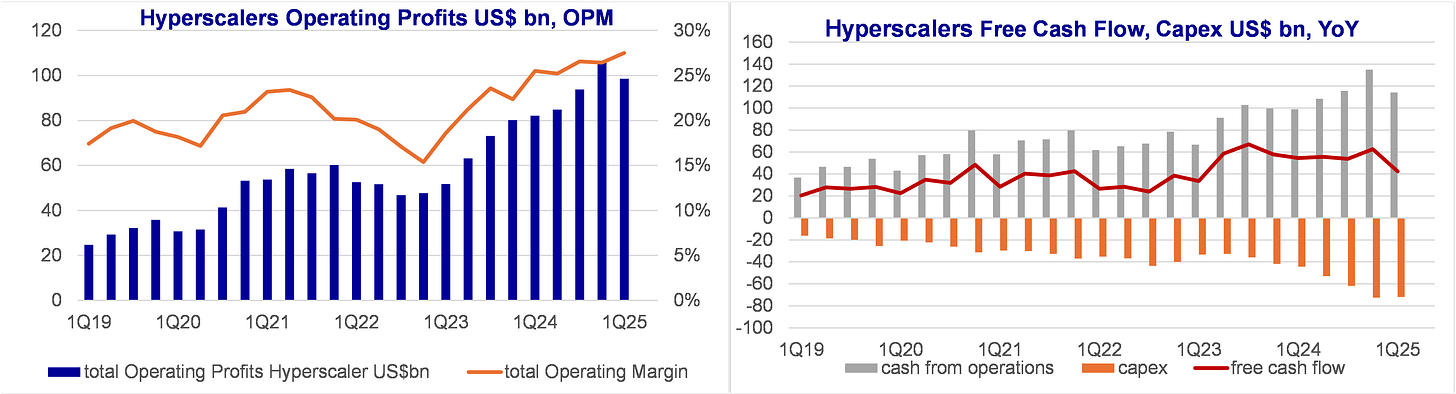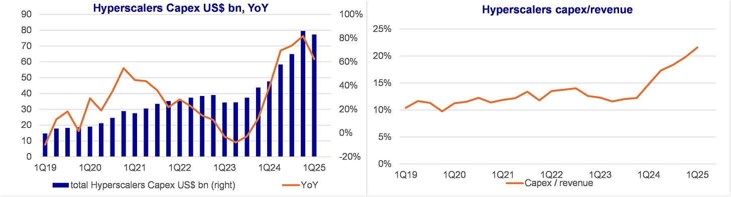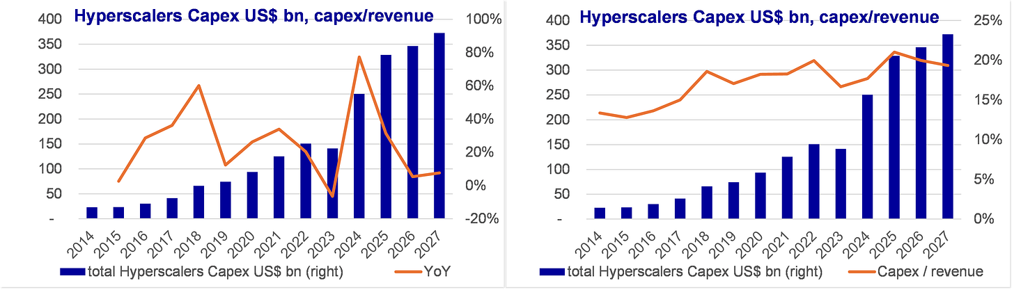 there is no sign of financial strain or negative impact from elevated Capex and AI investments. As such, we can understand why hyperscalers do not express concern that they could be over-spending: