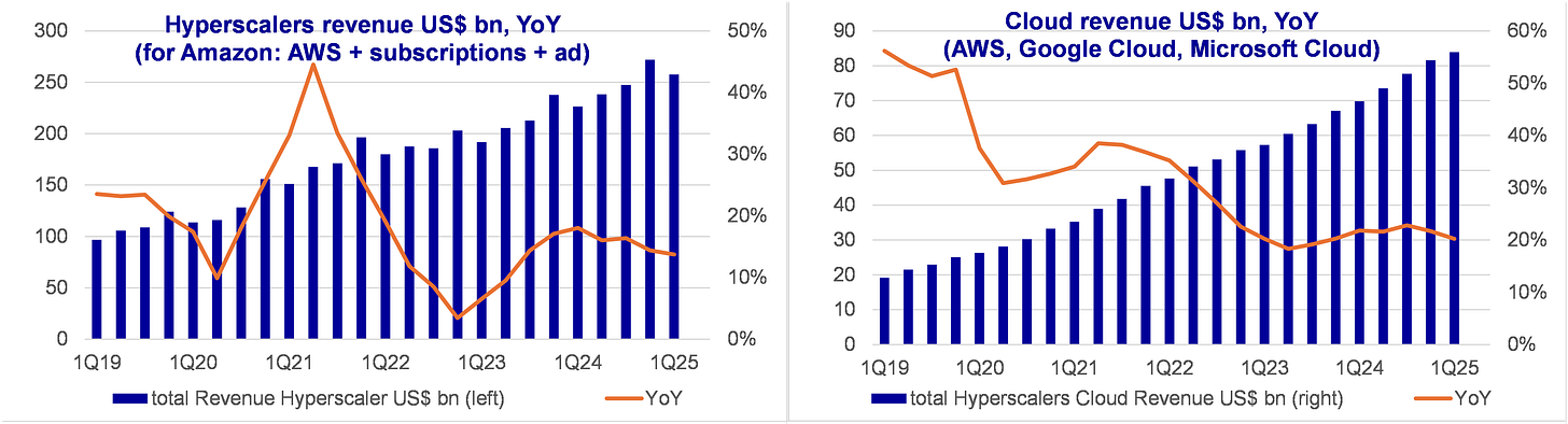 Hyperscale Capex is maintained or increased. No capex cuts or postponement. At the opposite: Amazon and Google are capacity constrained.
