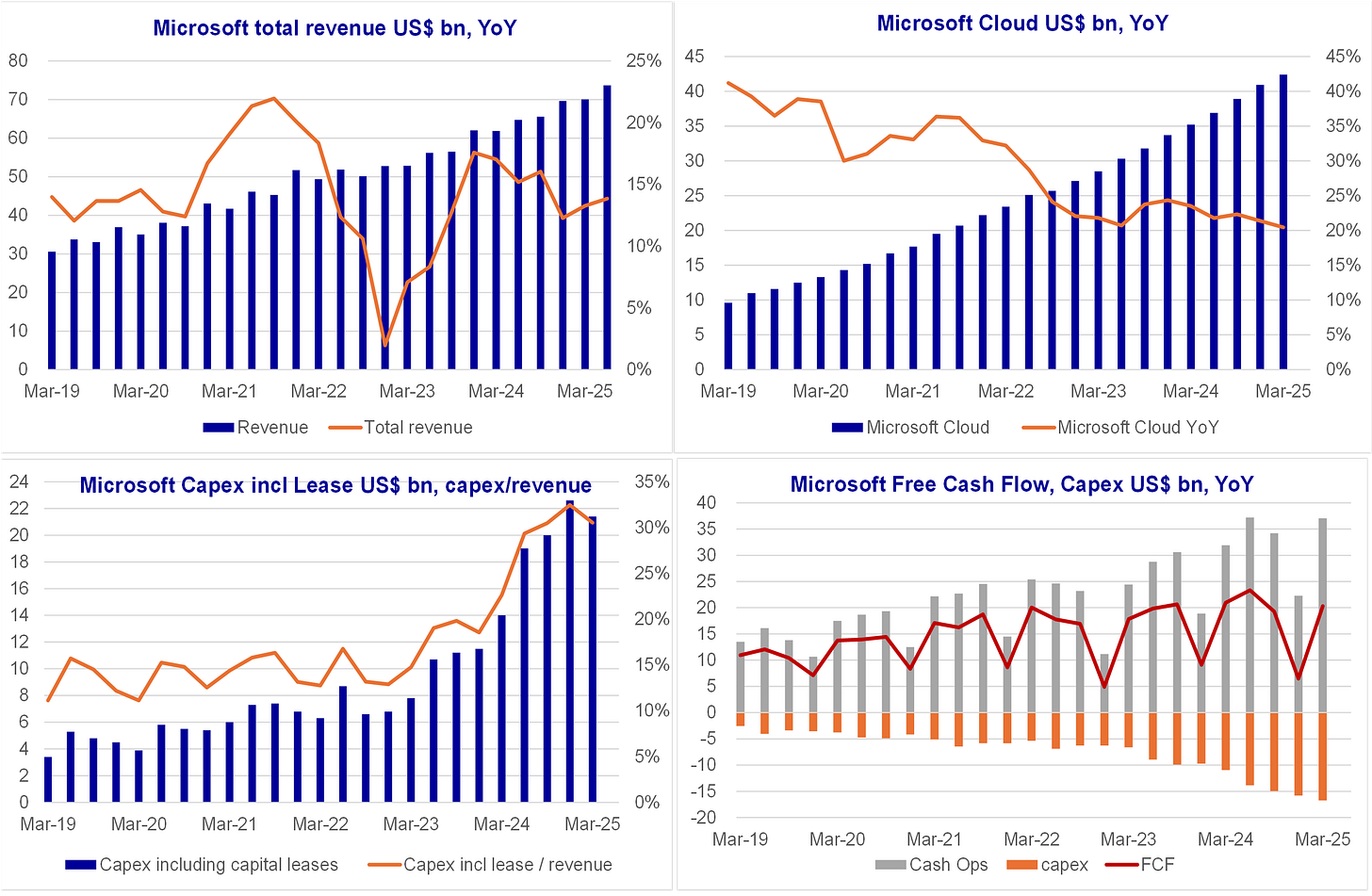 Looking at reported financials and Consensus forecasts, in aggregate below for the 4 hyperscalers