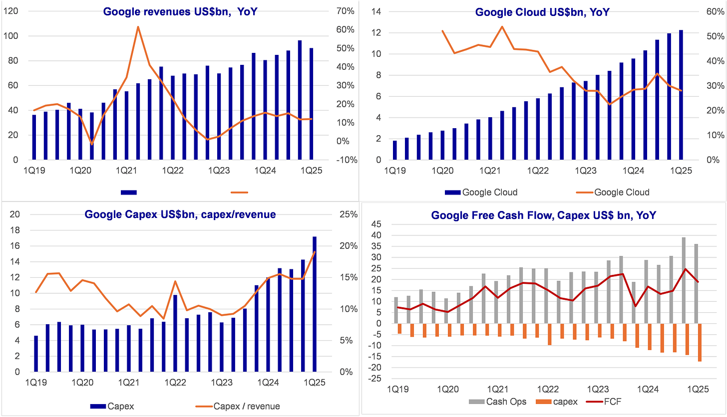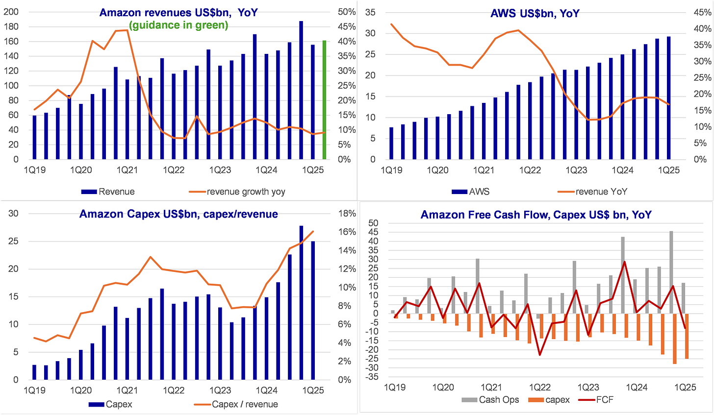 Large Capex increase has not lead to higher revenue growth so far – or AI revenues are still a small fraction of total and we can’t see that boosting up total growth