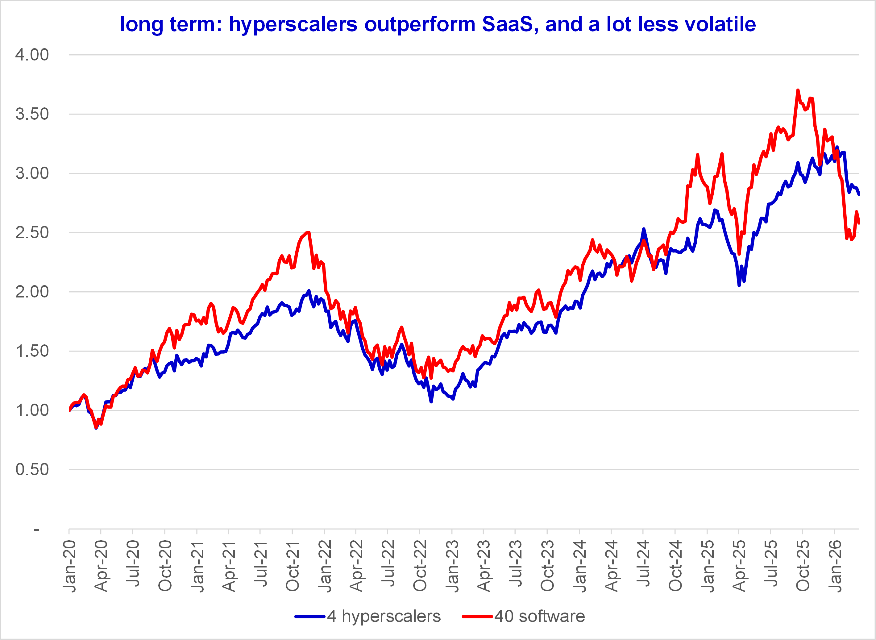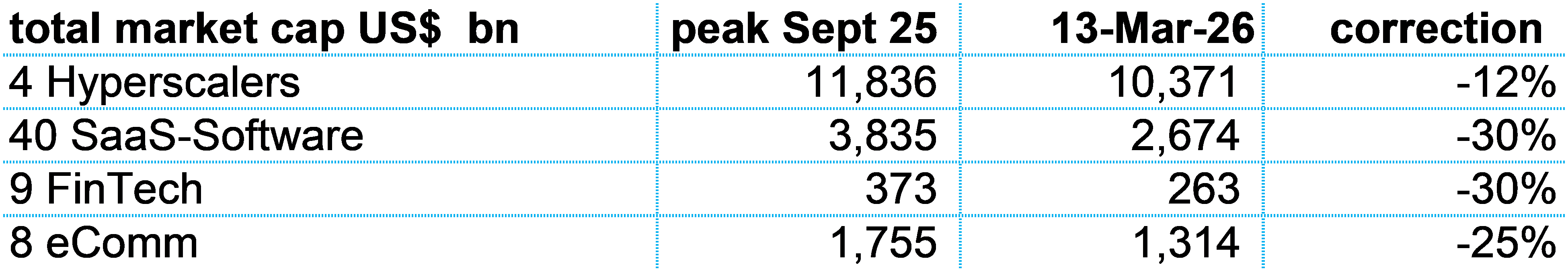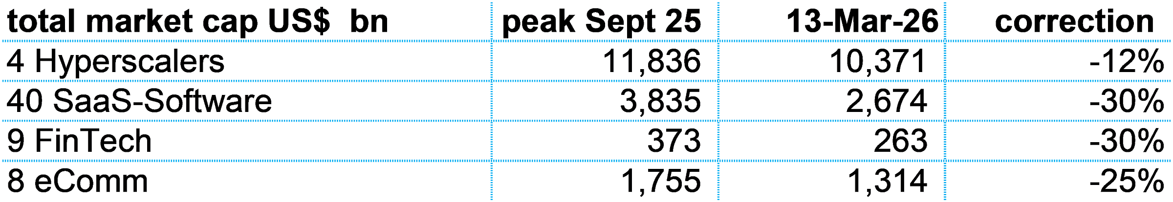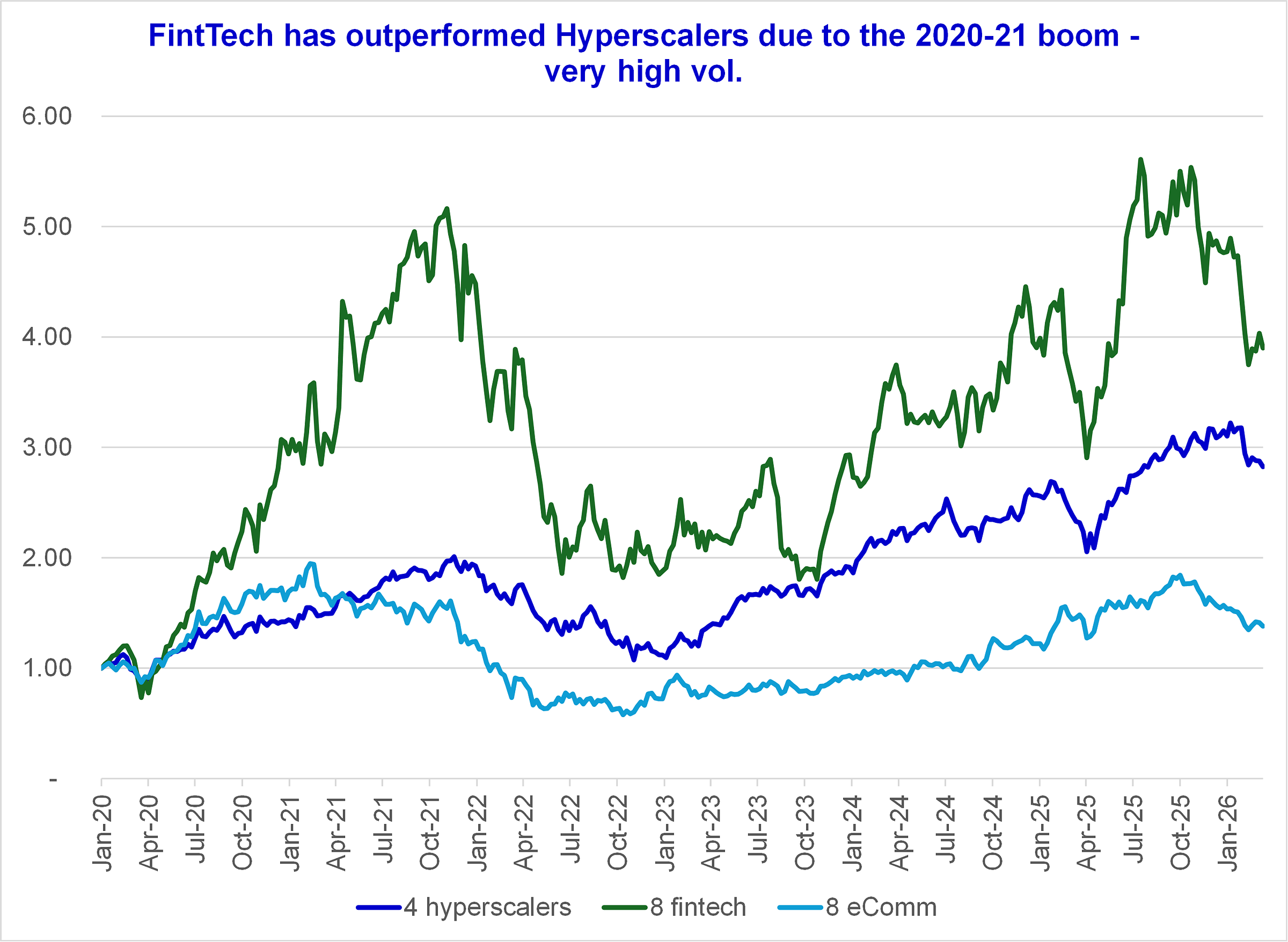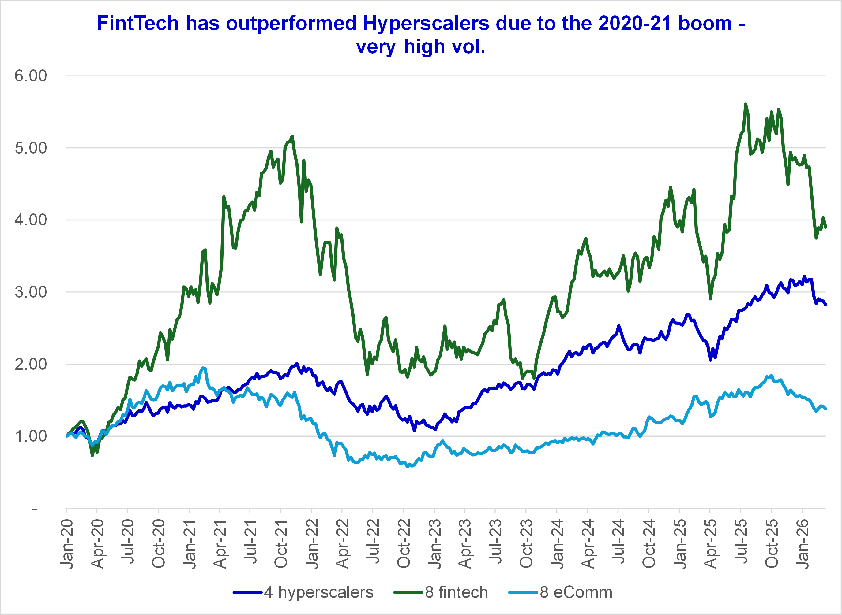 In this report, I want to think about SaaS-Software versus Hyperscalers. Which group is getting cheapest and is attractive? Is the steep Software correction justified by SaaSpocalypse? I add FinTech and eComm as well.