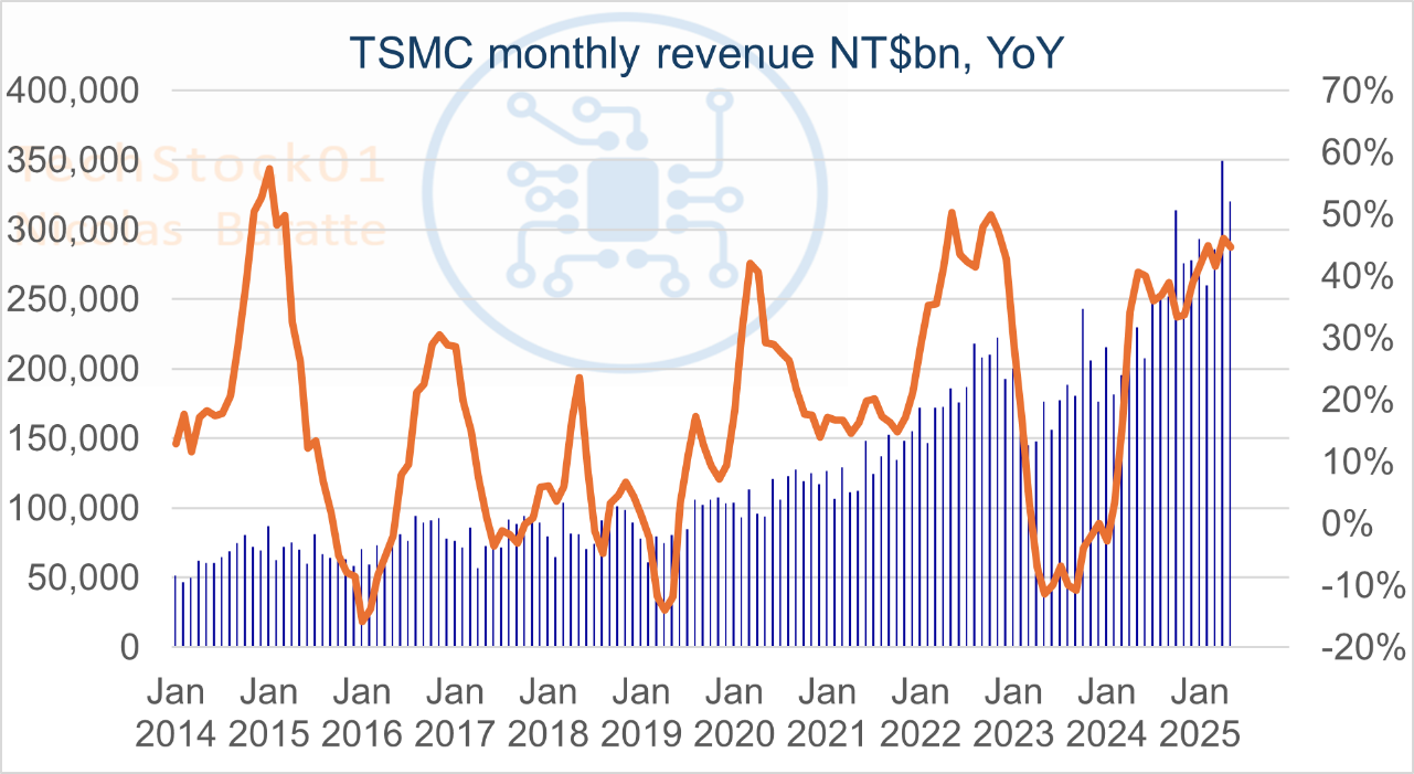 TSMC: YTD revenue growth 43%. Growth is accelerating - not slowing down.