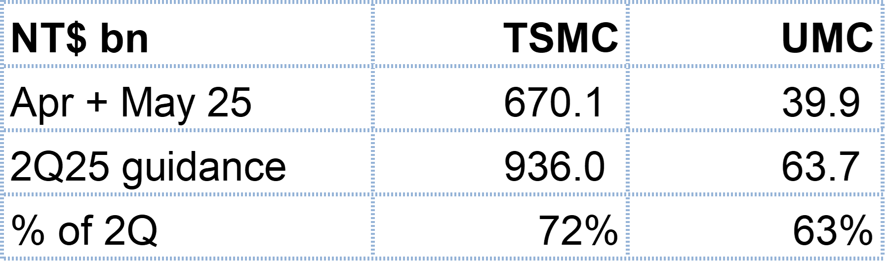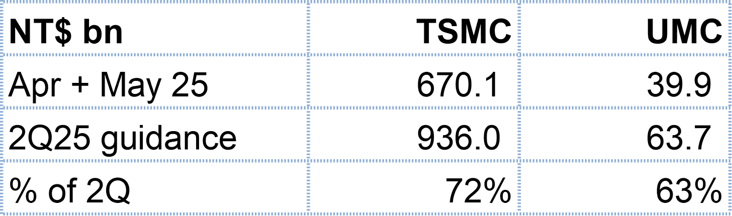 UMC is on its way to missing its 2Q revenue guidance as Apr + May represent 63% of 2Q guide.