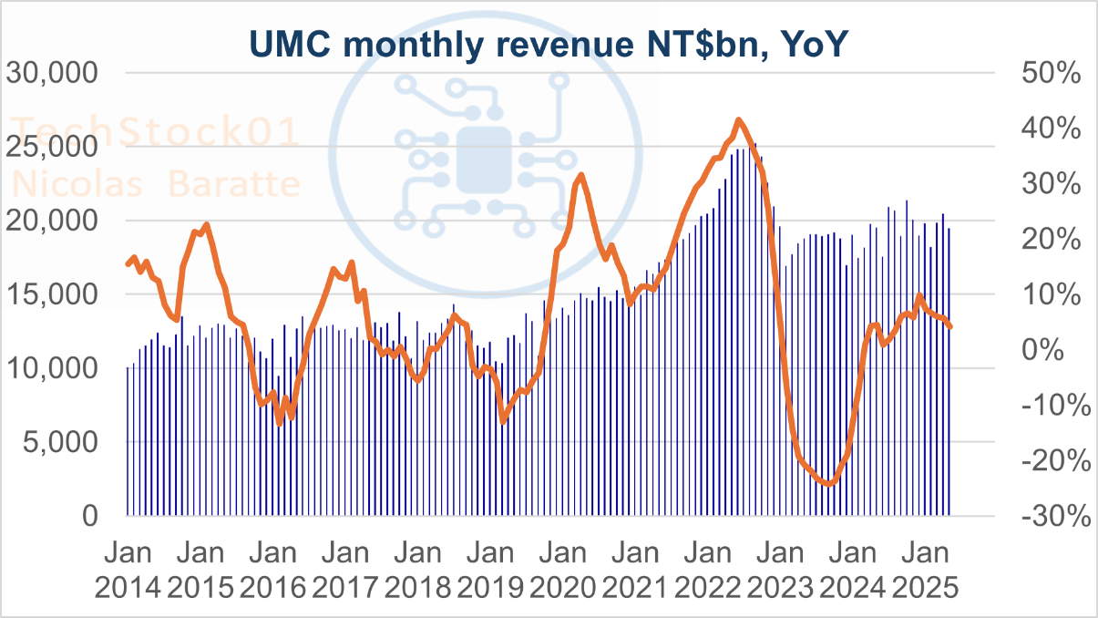 UMC: YTD revenue growth 4%. This is not showing improvement.